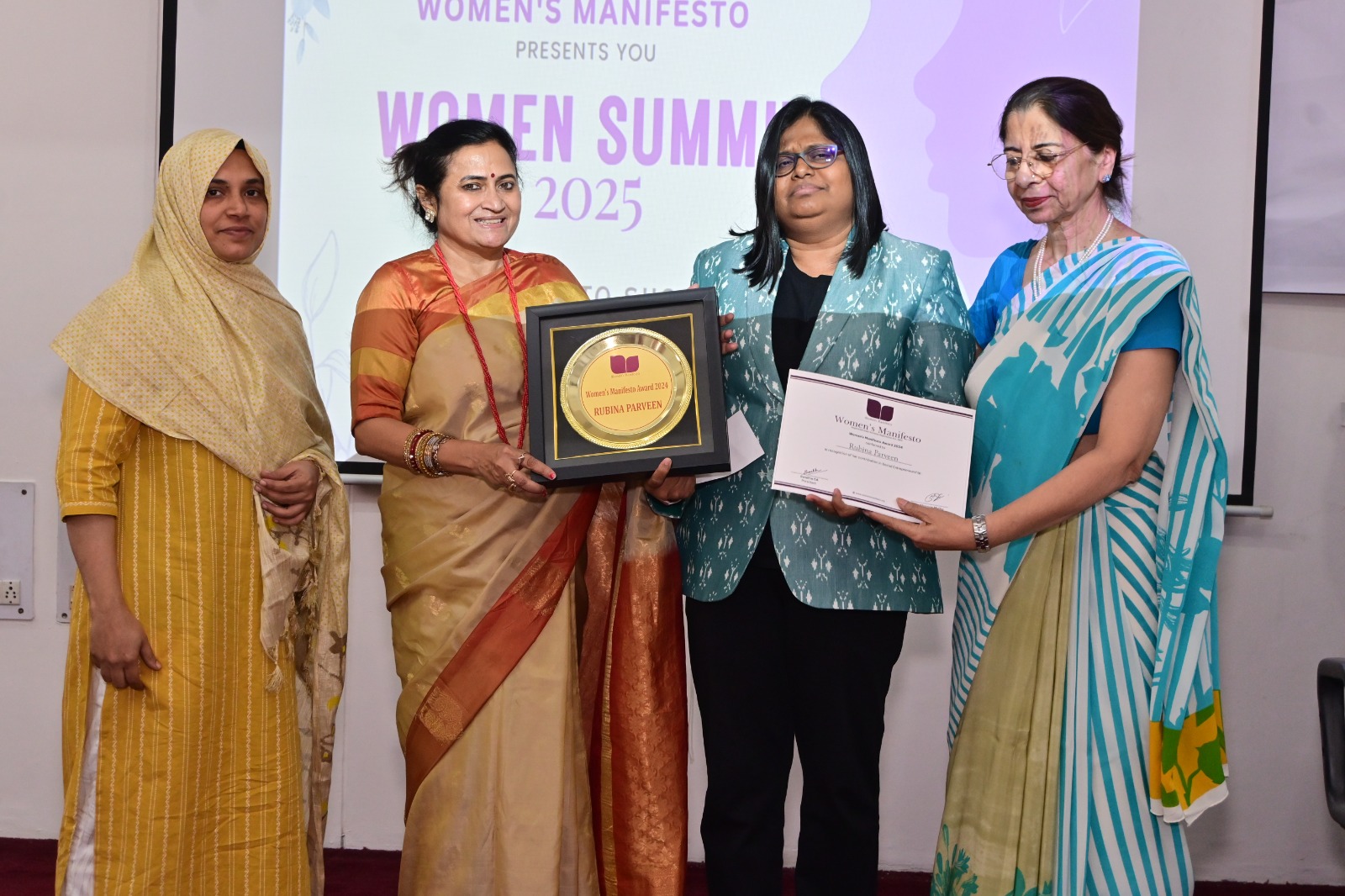 Women’s Manifesto Award 2023 conferred to Adv Teena Cherian, Uzma Naheed, Dr. Eram Khan and Jasmine Ambalathilakath